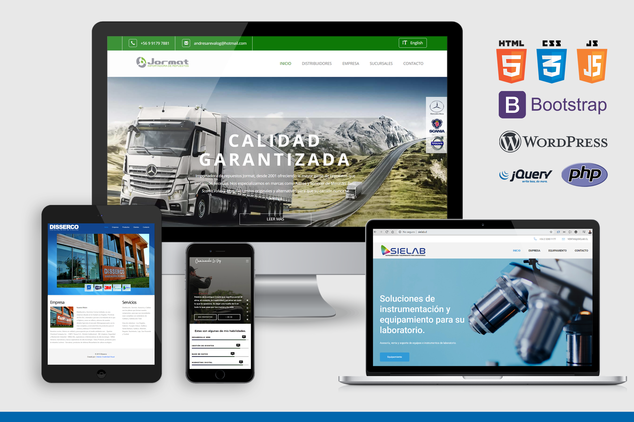 Desarrollo web sites tales como Importadora Jormat , Laboratorios Sielab , Empresas Disserco , Landing page devueltalbarrio.cl , Empresas Dissagro